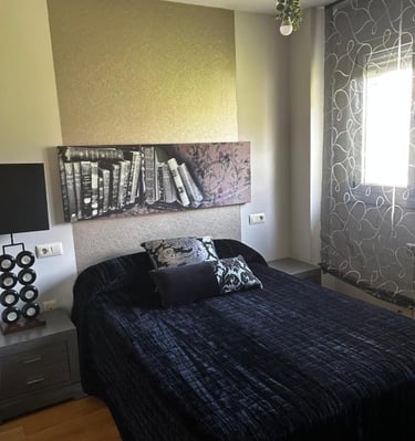 Casa de alquiler vacacional con vistas al jardín, terraza, balcón y parking privado gratis.